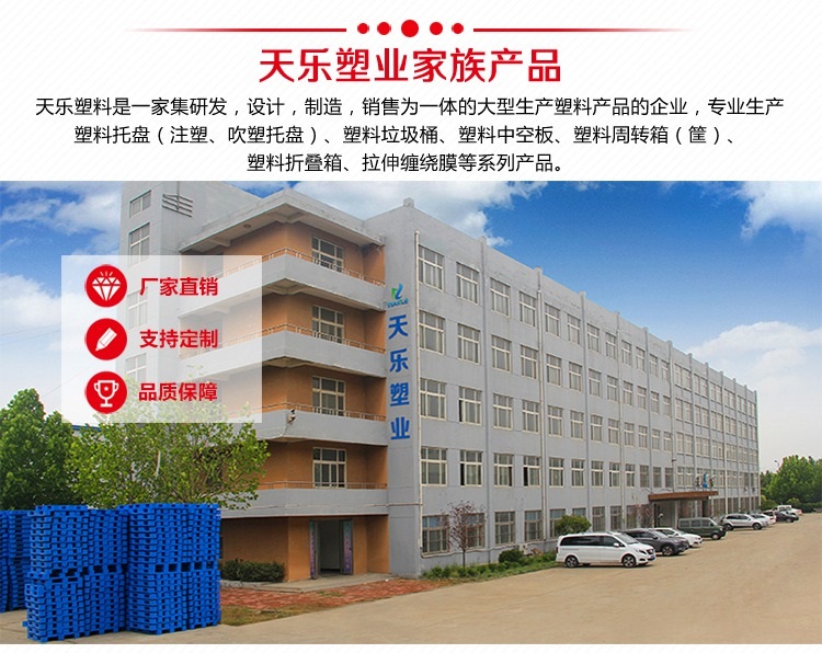 山東天樂塑料科技有限公司(簡稱:天樂塑業(yè))是一家集研發(fā),設(shè)計(jì),制造,銷售為一體的大型生產(chǎn)塑料產(chǎn)品企業(yè),公司有大型注塑、吹塑成型設(shè)備十多臺(tái),有經(jīng)驗(yàn)豐富的設(shè)計(jì)研發(fā)團(tuán)隊(duì),可提供產(chǎn)品定制服務(wù)。生產(chǎn)240L分類垃圾桶、120L/100L分類垃圾桶、50L/30L塑料垃圾桶、40L/20L雙胞胎垃圾桶、660L掛車?yán)?、智能垃圾桶、塑料托盤(注塑、吹塑托盤)、塑料周轉(zhuǎn)箱(筐)、塑料折疊箱、PP中空板、拉伸纏繞膜等系列產(chǎn)品。塑料垃圾桶產(chǎn)品適用于城市街道、小區(qū)物業(yè)、商業(yè)樓宇、星級(jí)賓館、學(xué)校醫(yī)院、各類公共廣場、餐飲飯店、夜市大排檔、鄉(xiāng)鎮(zhèn)環(huán)衛(wèi)、市政環(huán)衛(wèi)、工廠企業(yè)、花園公園、車站碼頭、風(fēng)景名勝區(qū)等場所。塑料托盤適用于倉儲(chǔ)物流、電商快遞、印刷印務(wù)、電子電器、化工化肥、服裝紡織、食品制藥、糧油面粉、煙酒飲料、商場超市、汽車汽配、五金配件、重工機(jī)械等行業(yè)。