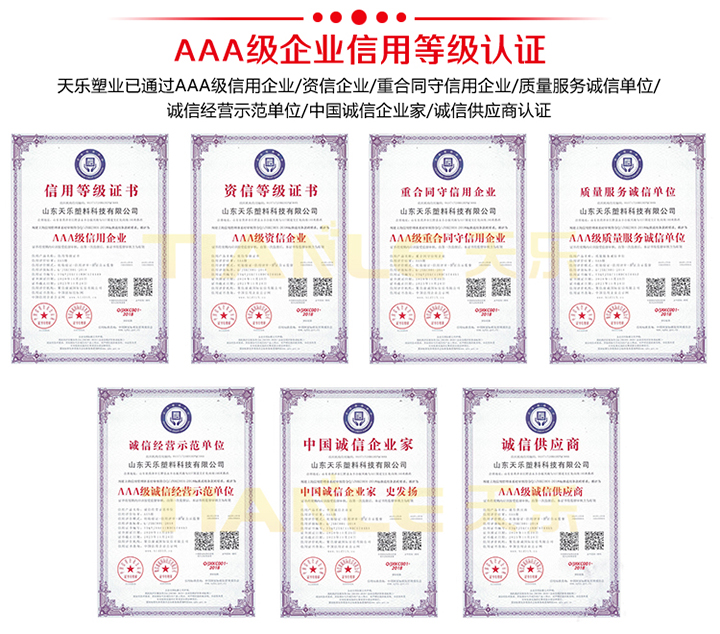 圣誕節(jié)前夕,天樂(lè)塑業(yè)公司迎來(lái)了“雙喜臨門(mén)”,我公司順利通過(guò)ISO質(zhì)量管理、環(huán)境管理、職業(yè)健康安全管理三體系認(rèn)證,AAA企業(yè)信用等級(jí)認(rèn)證。2020年天樂(lè)塑業(yè)公司獲得了突飛猛進(jìn)的發(fā)展,感謝客戶(hù)的每一次認(rèn)可,